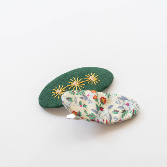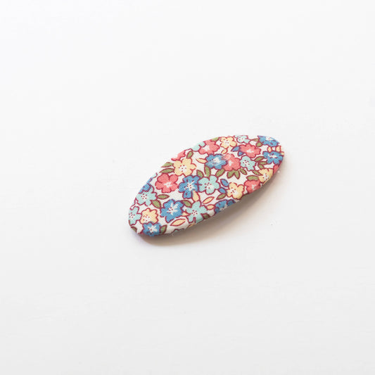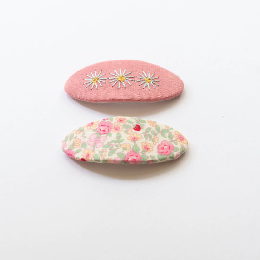 Oval Embroidered Floral Snap Hair Clips, Blue