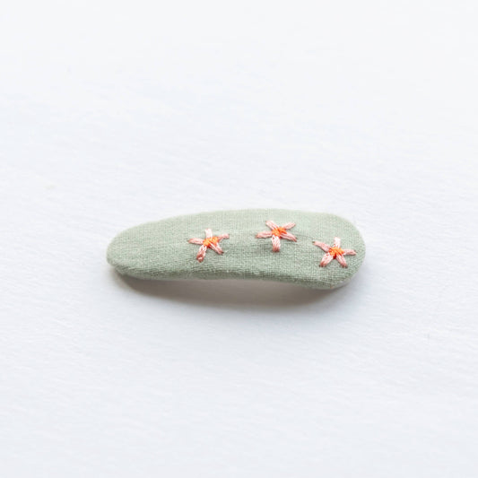 Triangle Embroidered Floral Snap Hair Clips, Sage
