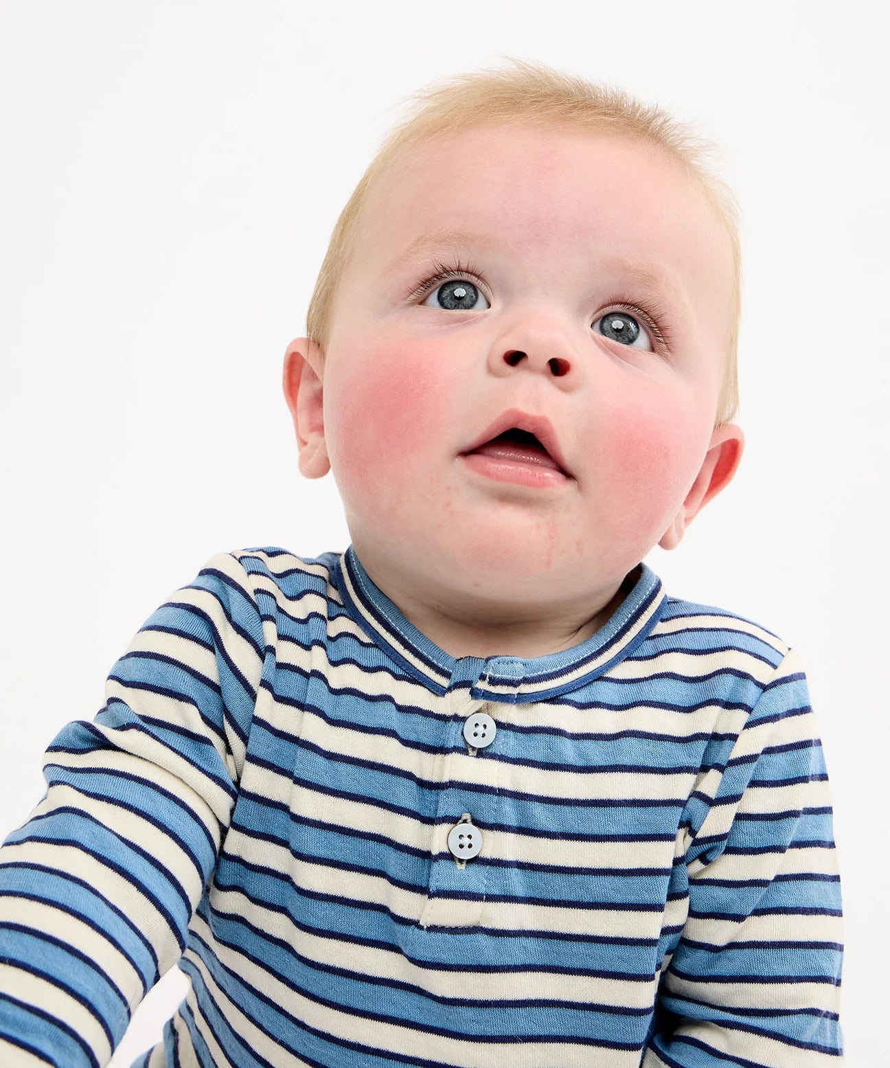 Perfect for playtime, parties, and everything in between, this so-sweet romper features stylish piping at the neckline and a slightly looser fit to make room for diapers. The soft and durable pima cotton washes up like magic and slips on season after season.