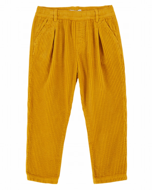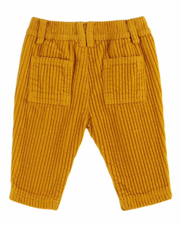 Mustard cotton velvet pants with large ribs. Elasticated waistband with belt loops. Pull-on style for easy dressing.