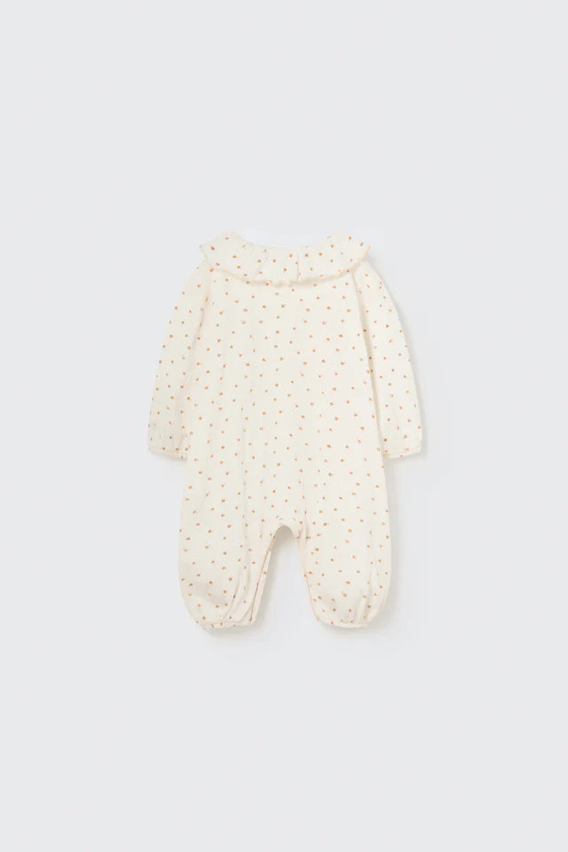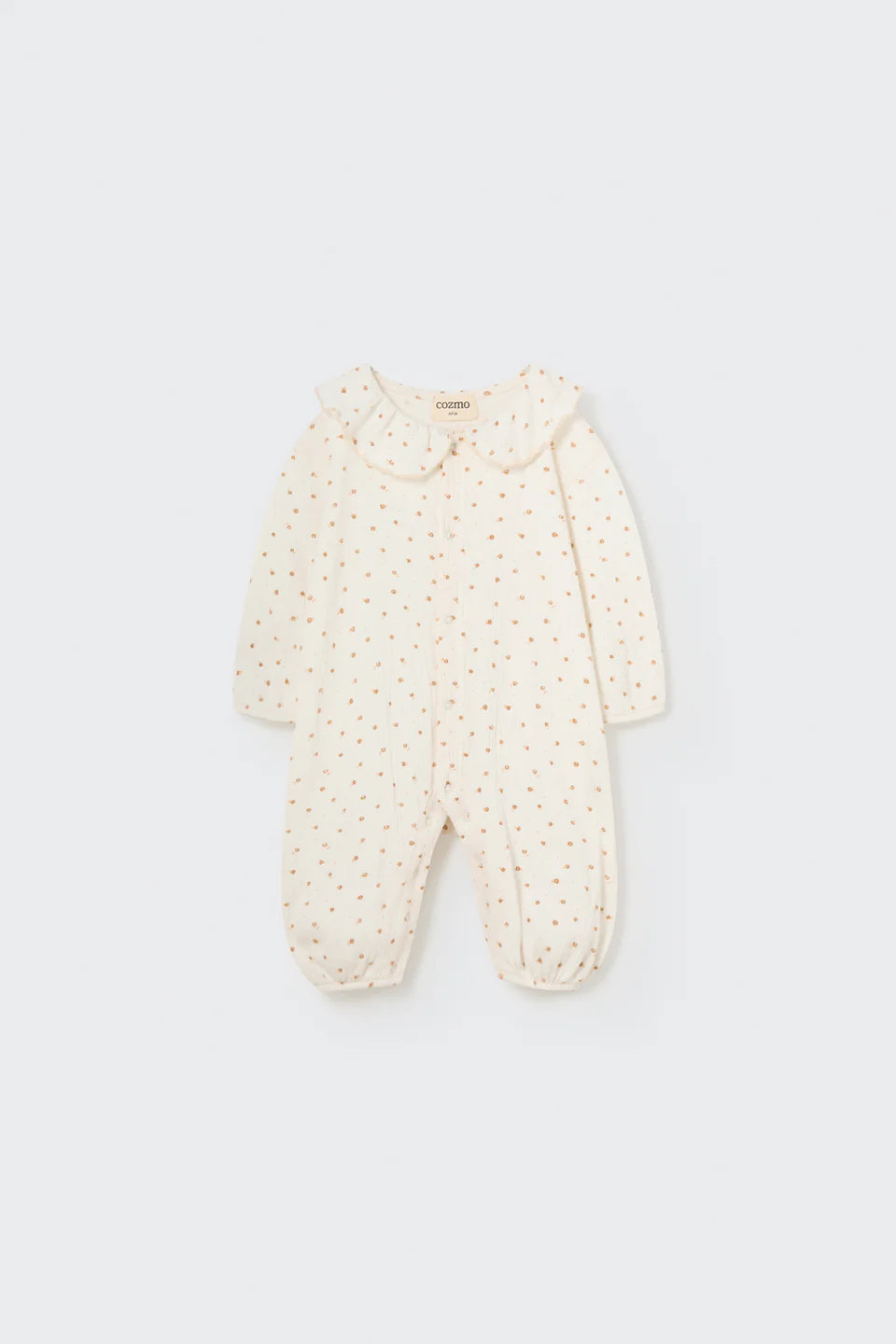 Cozmo Floral Gauze Newborn Jumpsuit, Ivory Coffee