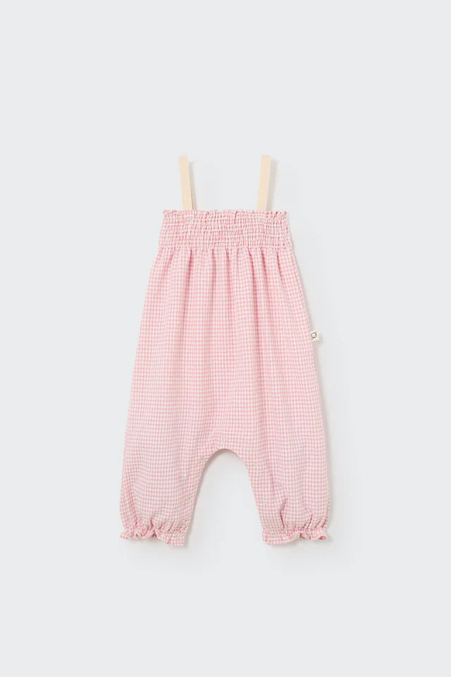 Cozmo Recycled Gingham Baby Overalls, Crystal Pink