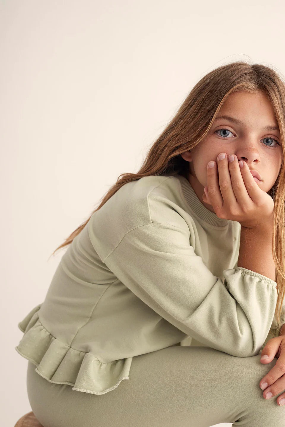 Cozmo Soft Plush Flounce Sweatshirt, Tender Green