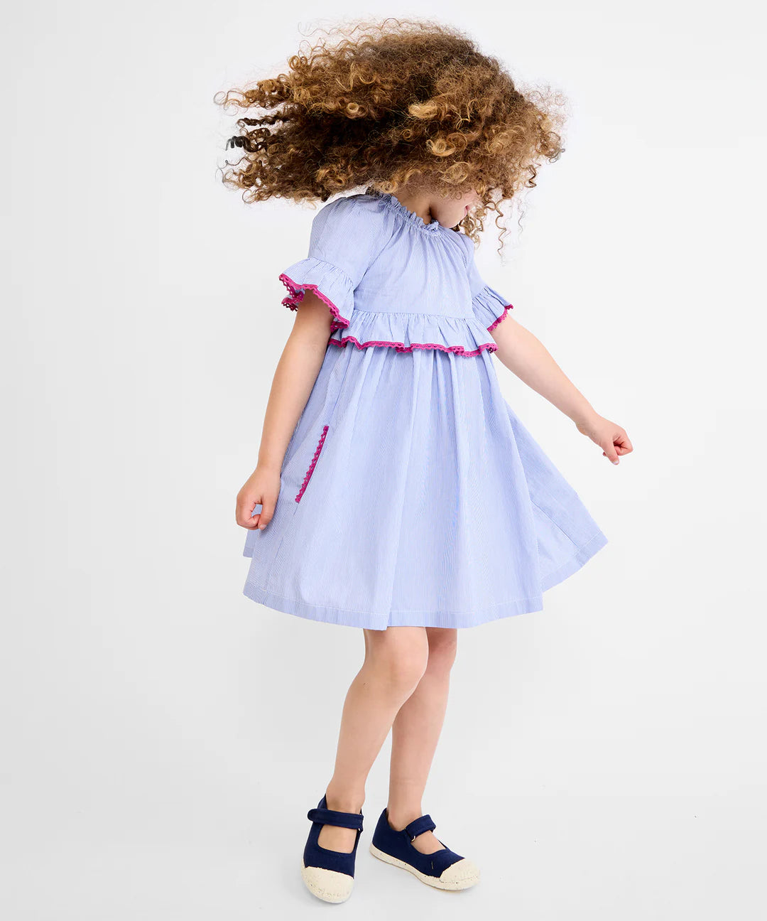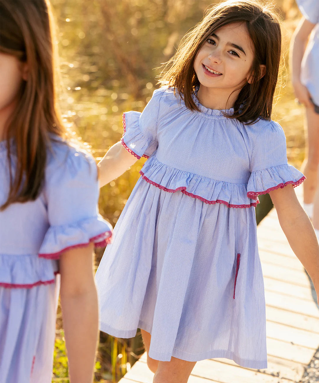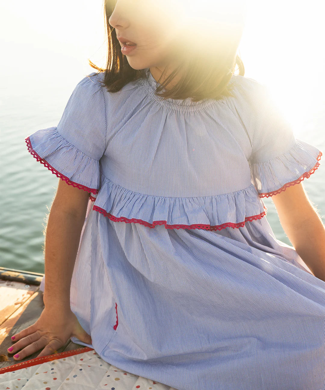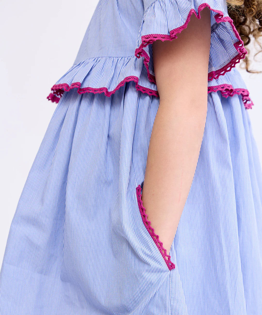 Polished and playful, the Diana Dress is the perfect everyday dress for school, playdates, and family gatherings. Designed with an elastic neckline that makes it extra easy to throw and go. Red crochet lace edge adds a delicate pop.