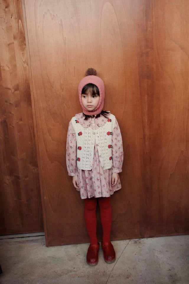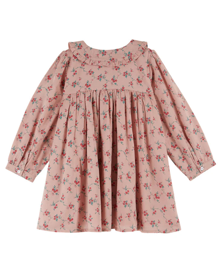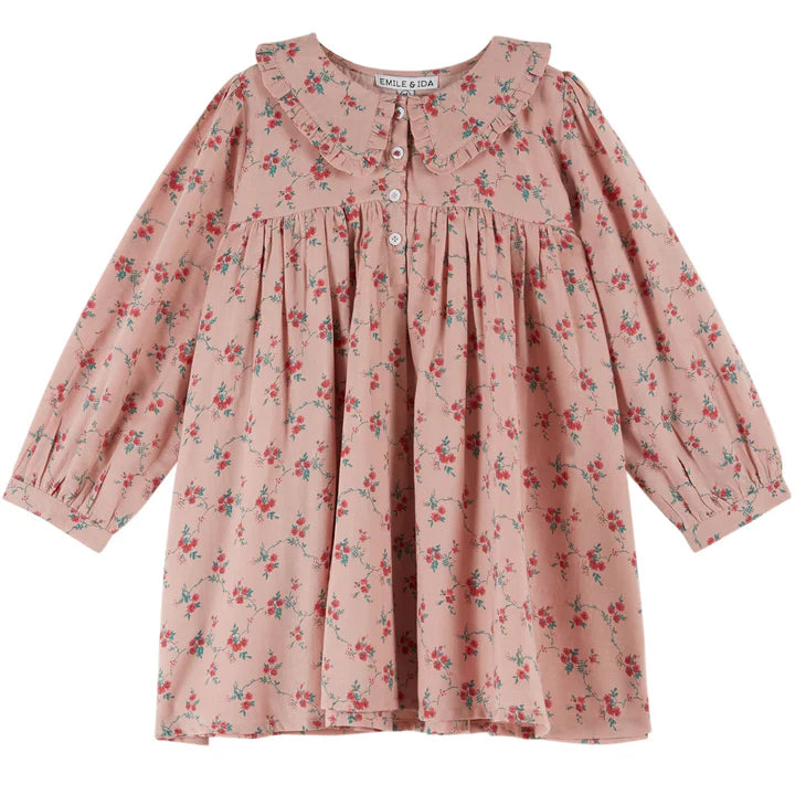 Pink floral dress with oversized collar detail. 100% Cotton.