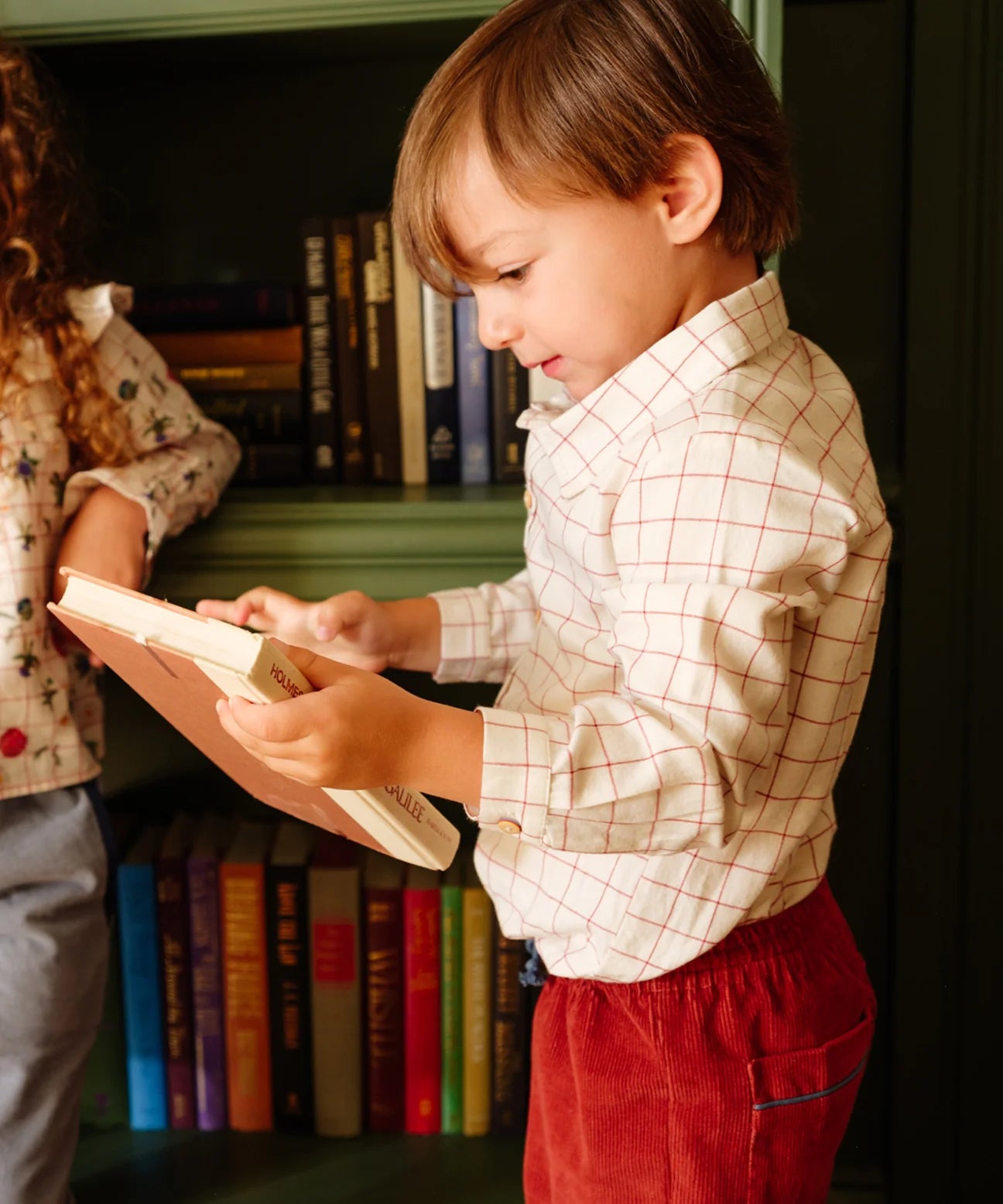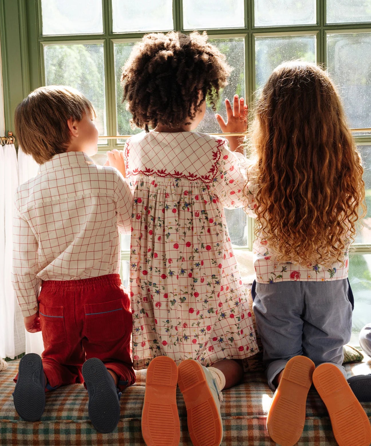 A casual button down shirt for boys or girls in the softest fabric you've ever touched. Our Jefferson shirt features shoulder room so that they can play with freedom, a flat shirt tail for an untucked and casual — or tucked in and put-together look, and our favorite detail of all: the sweetest rounded Peter Pan collar that’s perfectly nostalgic.