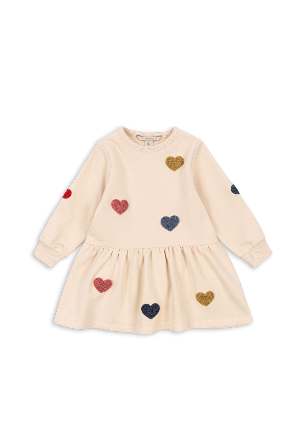 Our classic Lou sweat dress is a soft and wearable everyday favorite made from organic cotton with a hint of stretch. Designed with a flared skirt, decorative terry cotton patches, and a classic crewneck.