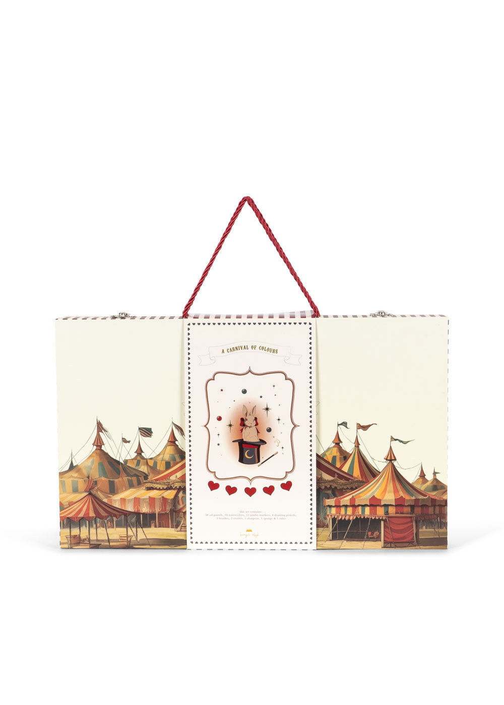 A complete set for budding little artists with everything you need to express yourself through different art forms. The set includes 102 elements in total: 30 oil pastels 24 watercolor tablets 24 coloring pencils 18 jumbo markers 4 drawing pencils 3 brushes 2 erasers 1 sharpener 1 sponge 1 ruler