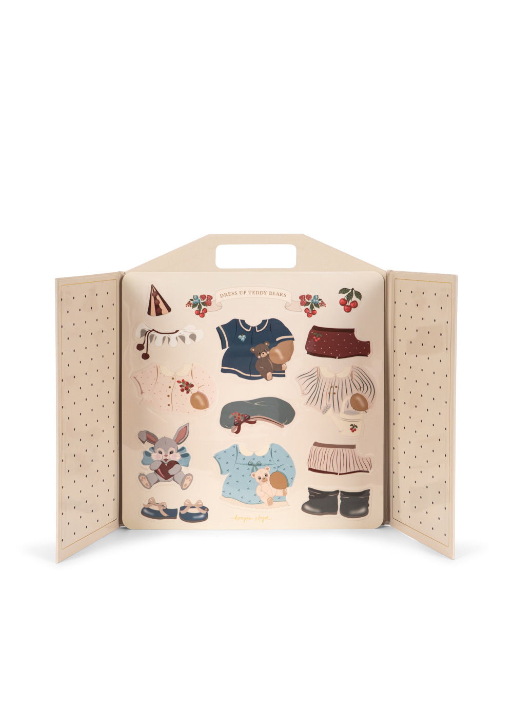 Magical little sticker book that invites you to dress up your favorite little teddy bears in cute little outfits. Made with a beautifully illustrated background and the sweetest teddy bears that love to play dress-up. Stick, peel, and stick again - these reusable stickers are made for hours of fun. Suitable from 3y+