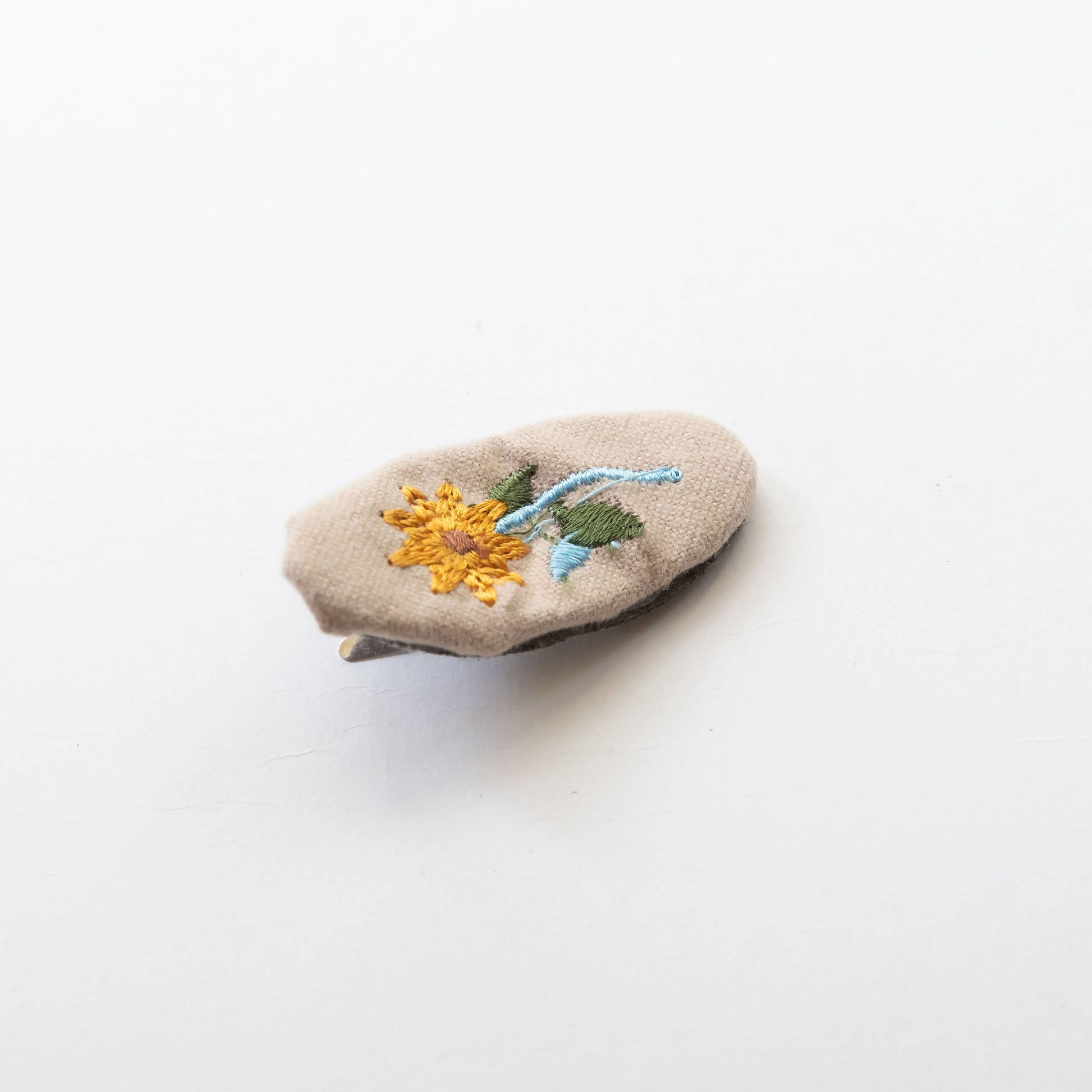 Oval Embroidered Floral and Fish Snap Hair Clips