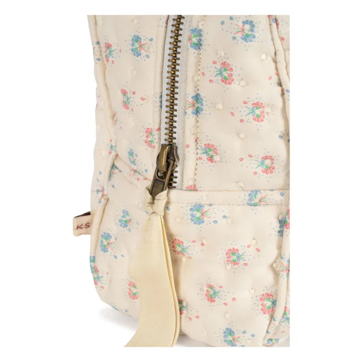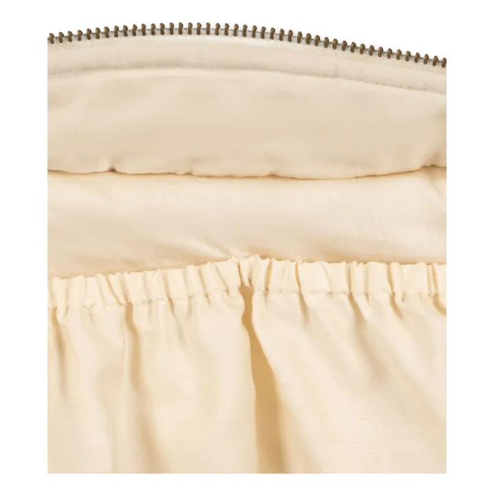 Large quilted toiletry bag designed with one big compartment and a small inside pocket. It is softly padded in order to keep your essentials safe. Closes with a zipper. Materials: Main 100% organic cotton. Filling 100% recycled polyester.