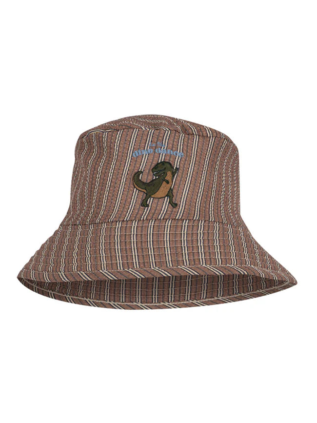 Keep your little one stylish and protected with the Konges Sløjd Tigers Eye Seer Asnou Bucket Hat! Crafted from 61% recycled polyester and 39% polyester, this seersucker sun hat boasts a charming design with durability and environmental responsibility in mind. Ideal for sunny days by the water, it's both comfortable and kind to the planet, making it a perfect choice for eco-conscious families.