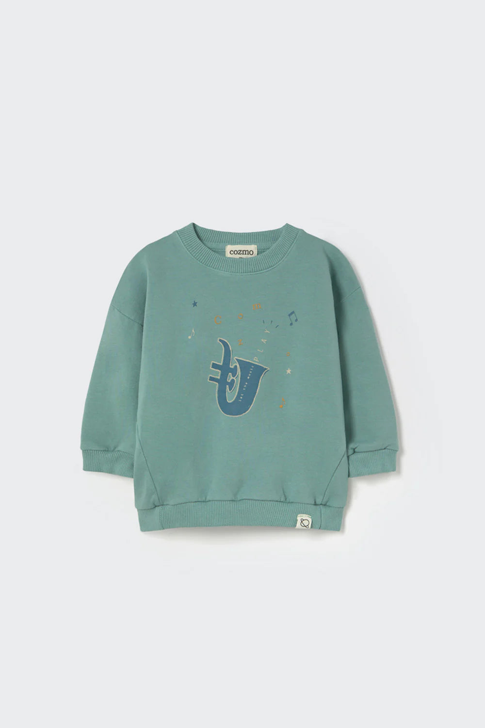 Part of Cozmo’s organic cotton baby clothes collection, this baby sweatshirt is crafted from premium brushed fleece to provide extra warmth and comfort. It features ribbed trims at the neck, cuffs, and hem, with forward side seams for a tailored fit. A musical-themed graphic print decorates the chest. Smooth on the outside and soft, warm, and cozy on the inside, it’s perfect for keeping your baby comfortable all day.