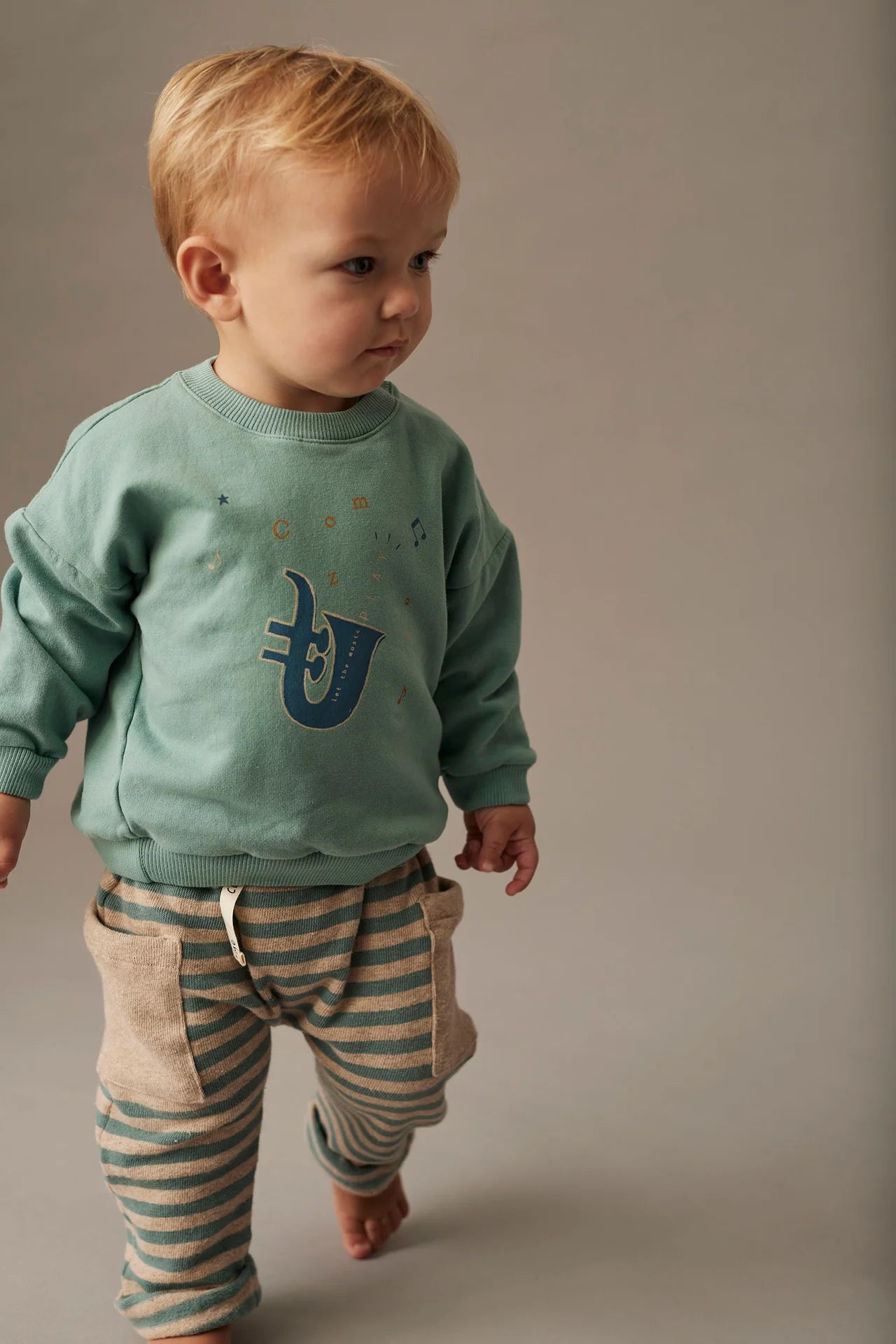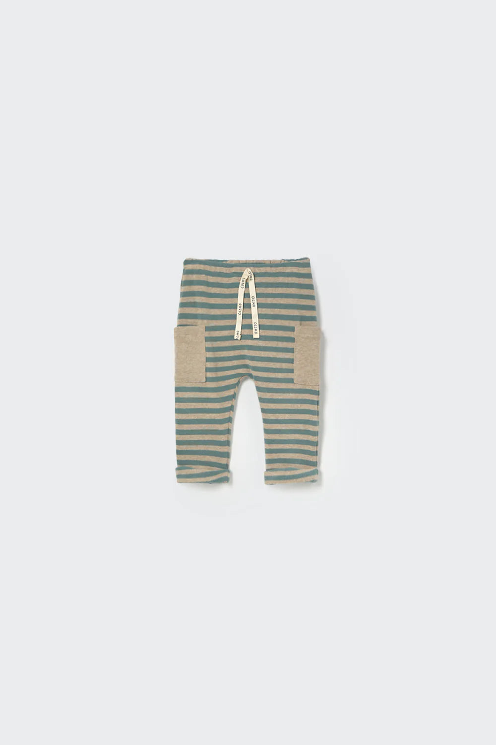 Striped baby pants in soft knit, brushed inside and out for extra warmth and a pleasant feel. Designed with an elastic waistband and a decorative drawstring in a solid color for added contrast. Featuring practical patch pockets on the legs and rolled-up hems for a laid-back, cozy look. A warm and comfortable essential for cooler days.
